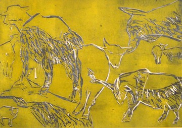 Ziegen, 2007. Farbhholzschnitt. 30 x 41,5 cm