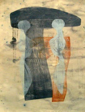 Zwei Gestalten, 2009. Druck, Öl auf Papier. 42 x 59 cm