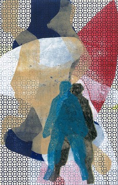 Drei Männer, 2011. Öl auf gemustertem Papier. 18 x 27 cm