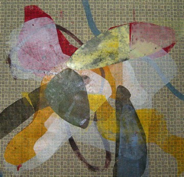 Insekt auf Blüte, 2011. Druck, Öl auf gemustertem Papier, 40 x 40 cm