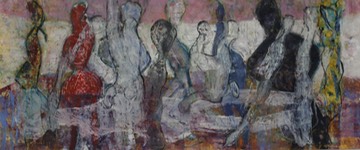 Begegnung, 2012. Öl auf Leinwand. 40 x 100 cm