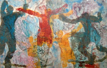 In Bewegung, 2009. Gouache, Papier auf Leinwand. 23 x 40 cm