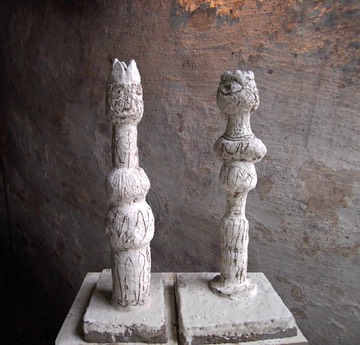 König und Königin, 2009.Terracotta. 30 x 40 t x 73 cm; 49 b x 40 x 74 cm